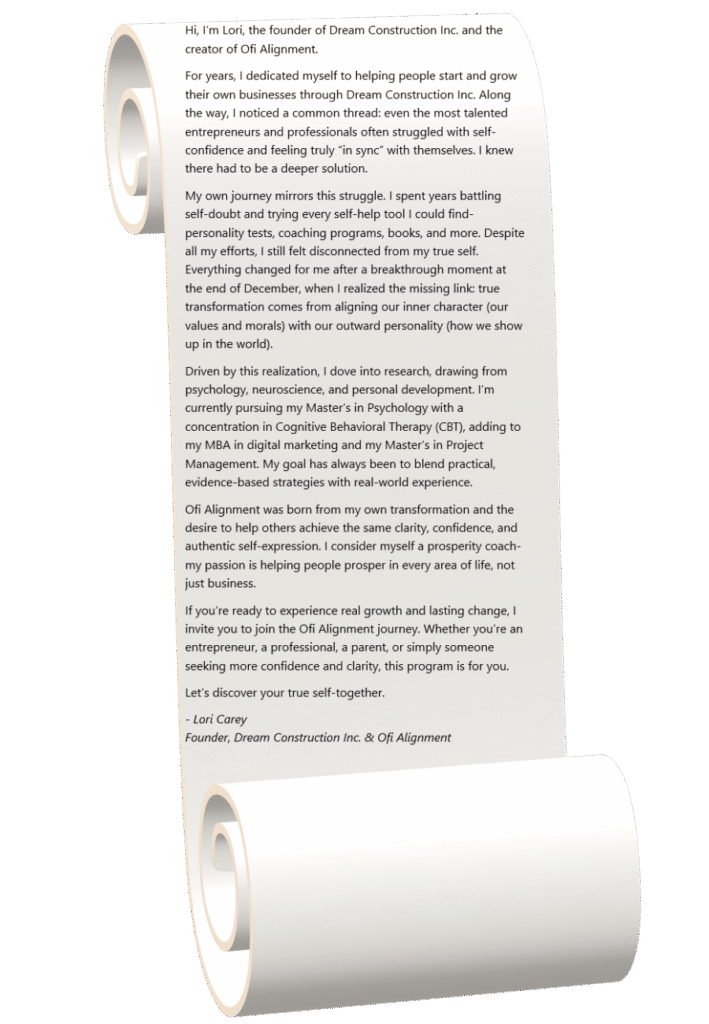Ofi AlignmentTM is here to support you every step of the way. Your journey to self-alignment and authentic living starts here!